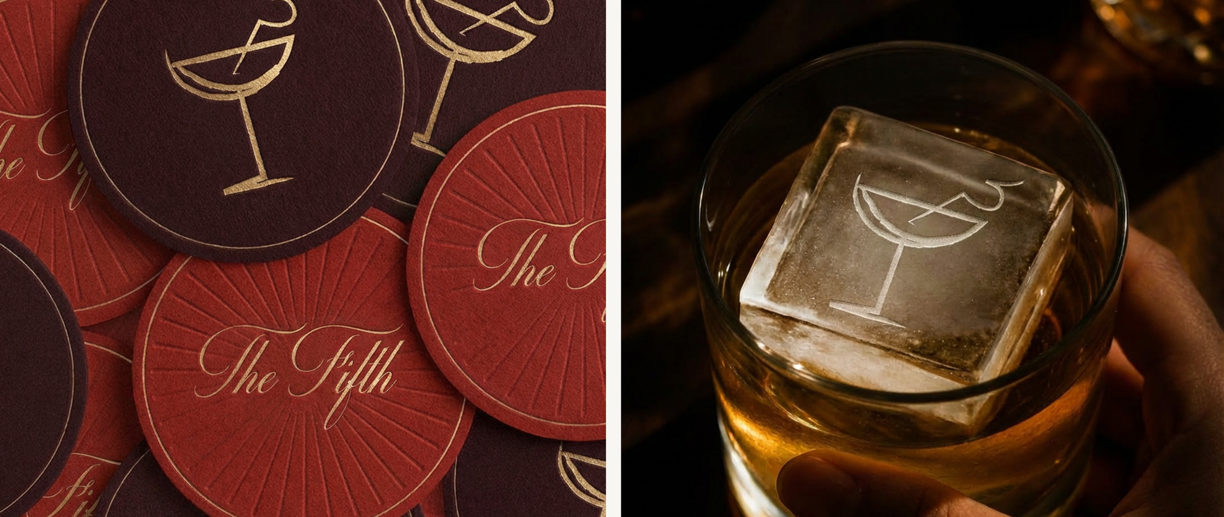 The Fifth needed a brand that could do what a great speakeasy does - create intrigue, signal quality, and make people feel like they're in on something. The challenge was striking the right balance between drama and restraint. Lean too far into the theatrical and the brand risks feeling costumed; pull back too much, and it loses the atmosphere that makes the concept worth visiting. The identity also needed to work hard across physical touch points, from signage and menus to coasters and glassware, where craft and finish matter as much as the design itself.