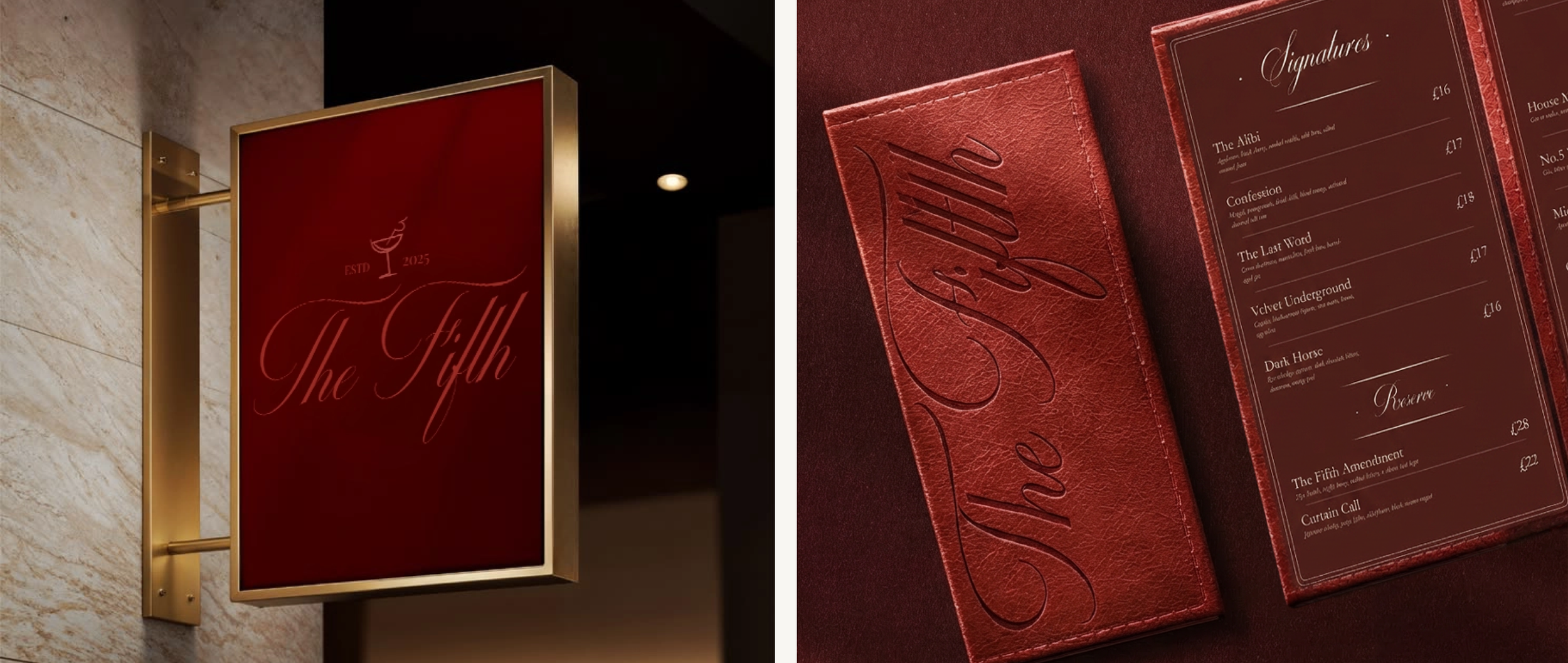 The Fifth is a speakeasy-style cocktail bar in London, built around the idea that the best nights are the ones that feel like a secret. As the bar launched, they needed a brand identity that could carry the weight of that atmosphere, something that felt theatrical and atmospheric without tipping into gimmick.